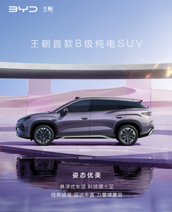 宋Ultra EV在车身尺寸上变得更大,官方公布的车身长宽高分别为4850×1910×1670mm,轴距达到2840mm,相较于宋PLUS EV轴距提升显著。宋Ultra EV放弃了轿跑化溜背设计,采用平直车顶与方正车身布局,最大化保留车内头部与后排空间,更贴合中国家庭“后排乘坐频繁、儿童座椅使用率高、老人上下车便捷”的真实使用场景。同时升级尾灯设计,有望采用与汉、唐同款的中国结尾灯,提升整车高级感。