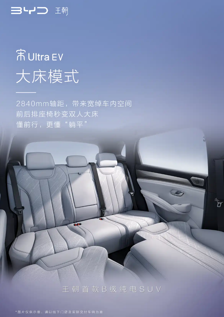 继宋Pro EV、宋PLUS EV奠定紧凑级市场自身优势后,比亚迪正式官宣将推出首款B级纯电SUV, 宋Ultra(参数|询价) EV。该车型定位将介于宋PLUS EV与唐EV之间。此前该车网传售价预计在18万元左右,2月25日,官方发布了一组宋Ultra EV的内饰图片,值得一提的是新车支持大床模式。