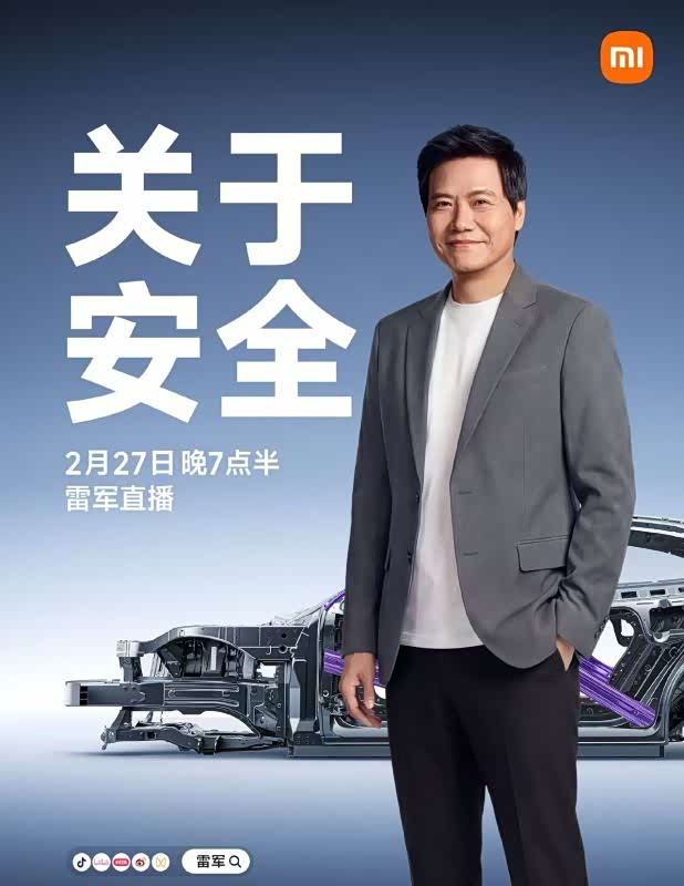 巧合的是,就在成都小米汽车碰撞燃烧事故责任认定报告复议结果落定之际,小米汽车再次官宣将于2月27日晚7点半由雷军携专家直播讲解“安全体系”。