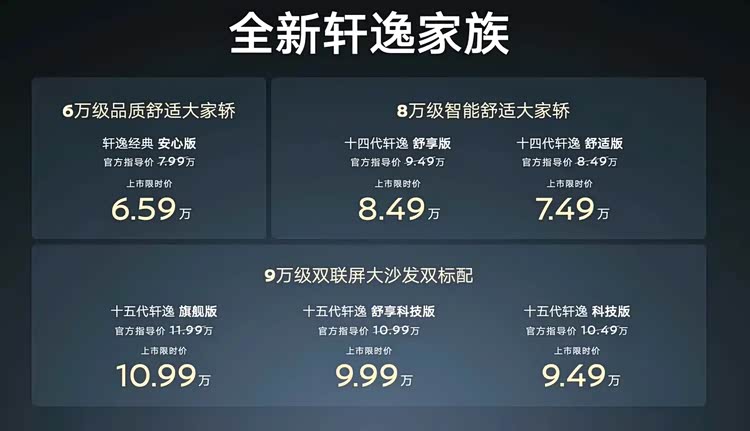 轩逸经典:限时6.59万起,主打三四线城市和网约车市场