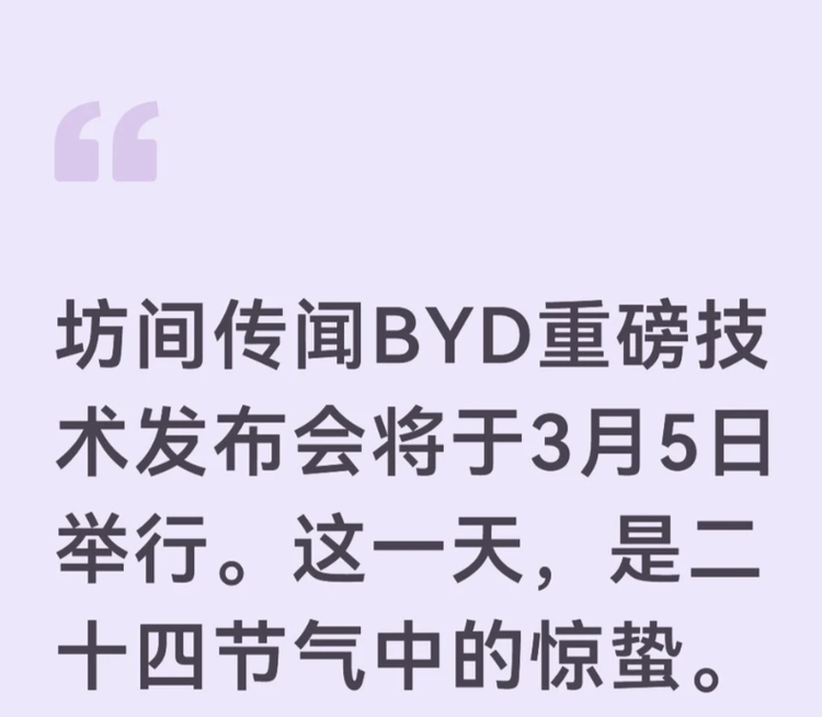 比亚迪此次技术发布会跳票,虽未透露具体原因,但结合车企发布新技术的常规节奏来看,大概率是出于技术打磨与落地适配的考量。比亚迪向来以技术务实著称,旗下三电技术、混动技术等均经过充分的测试与调校后才正式落地,从未盲目追求发布速度而推出不成熟的技术。此次原定的重磅消息未能如期公布,或许是相关技术尚未完成最后的测试验证,或是在车型适配、量产落地等环节仍有细节需要优化,相较于仓促发布引发后续问题,车企选择暂缓公布,无疑是更稳妥的选择。