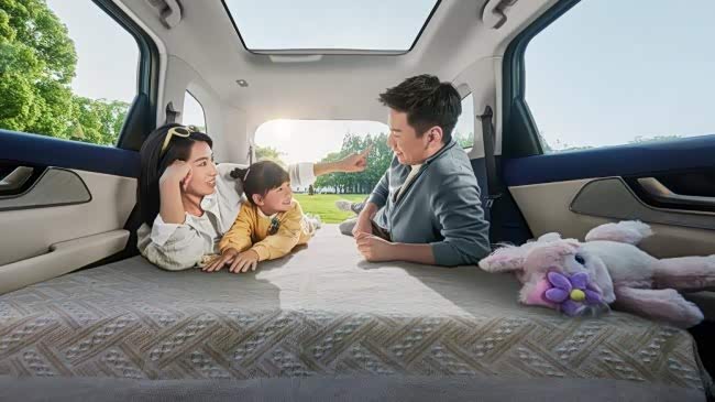 空间设计的精髓,在于以灵活布局实现全场景适配,这正是风云T9的核心优势所在。该车拥有近4米8的车身长度,搭配2770mm的越级轴距,空间表现领跑同级车型。其中的5+2座布局,可灵活变换出12种座椅组合,精准匹配家庭不同出行场景。日常通勤满载出行时,车内每一位乘员都能拥有充足舒展的乘坐空间,告别拥挤局促;当需要搬运大件物品、装载旅行行李时,放倒二三排座椅,即可扩容出2065L的超大储物空间,足以容纳30个行李箱,长途旅行的物资、户外露营装备都能轻松收纳。更具实用性的是“一键放倒”功能,操作便捷高效,可迅速将车厢变身2.1㎡的“移动大床房”,无论是长途自驾途中的临时休憩,还是户外露营时的住宿需求,都能为家人提供堪比星级酒店的舒适体验,这种“大平层”式的空间设计,让家庭出行的每一项需求都得到充分满足。