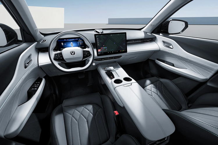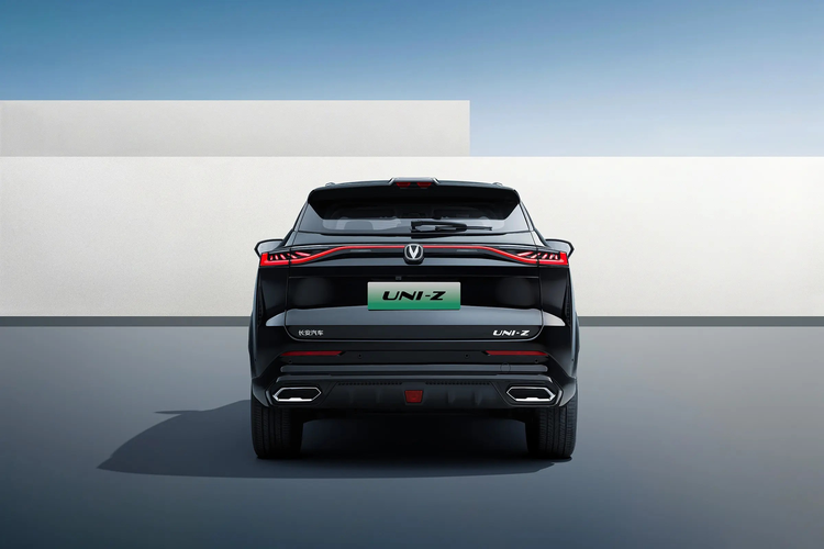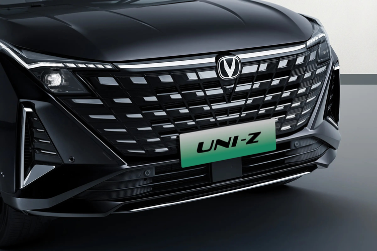 现款 UNI-Z PHEV 用的是倒梯形前格栅,里面是 L 形点阵装饰,中间挂着长安的 V 字徽标。整体风格谈不上特别激进,但看着比较顺眼,属于那种“不会出错”的设计。