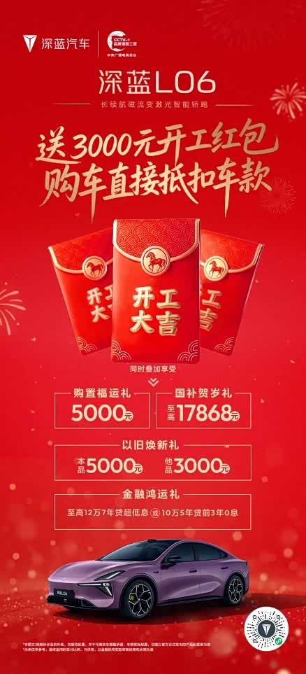 春启新章,骏马奔腾!伴随着新春年味的余温,各行各业陆续按下开工“加速键”。深蓝L06推出新春马年开工购车福利,携多重补贴、开年红包、超值金融方案来袭,助力广大消费者以全新姿态开启新春开局,活力奔赴职场与生活。