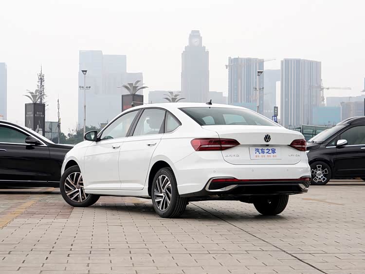 车身侧面,轩逸取消了老款标志性的C柱熏黑饰条,溜背倾角更大,整体姿态更低趴。搭配分段式腰线和传统机械式门把手,配备16英寸五辐运动轮毂。车尾设计与前脸呼应,贯穿式尾灯组内部加入熏黑处理,搭配上翘的小鸭尾扰流板,后保险杠下方点缀碳纤维纹路装饰条,采用隐藏式排气布局,整体简洁又有层次感。朗逸依然是传统的三厢造型,搭配贯穿式腰线,提供15英寸和16英寸两种尺寸的轮毂,门把手也是传统样式设计。车尾配备熏黑LED尾灯,灯腔内部采用分段式光带设计;下方配备黑色运动下包围,与车身线条自然衔接,同样采用隐藏式排气布局,让车尾整体观感简洁规整。值得一提的是,朗逸的高配车型搭载了转向辅助灯,能进一步提升行驶安全性。