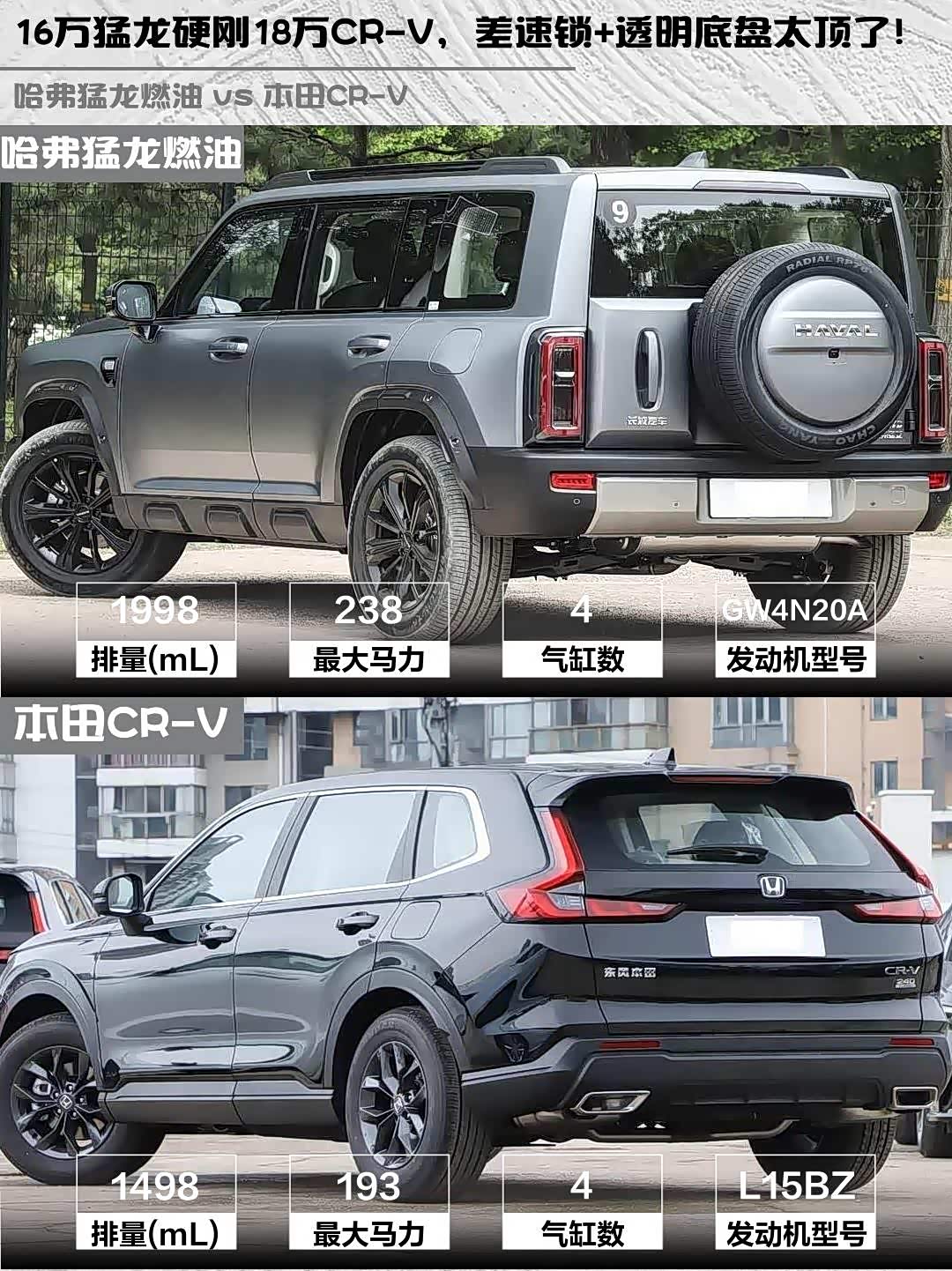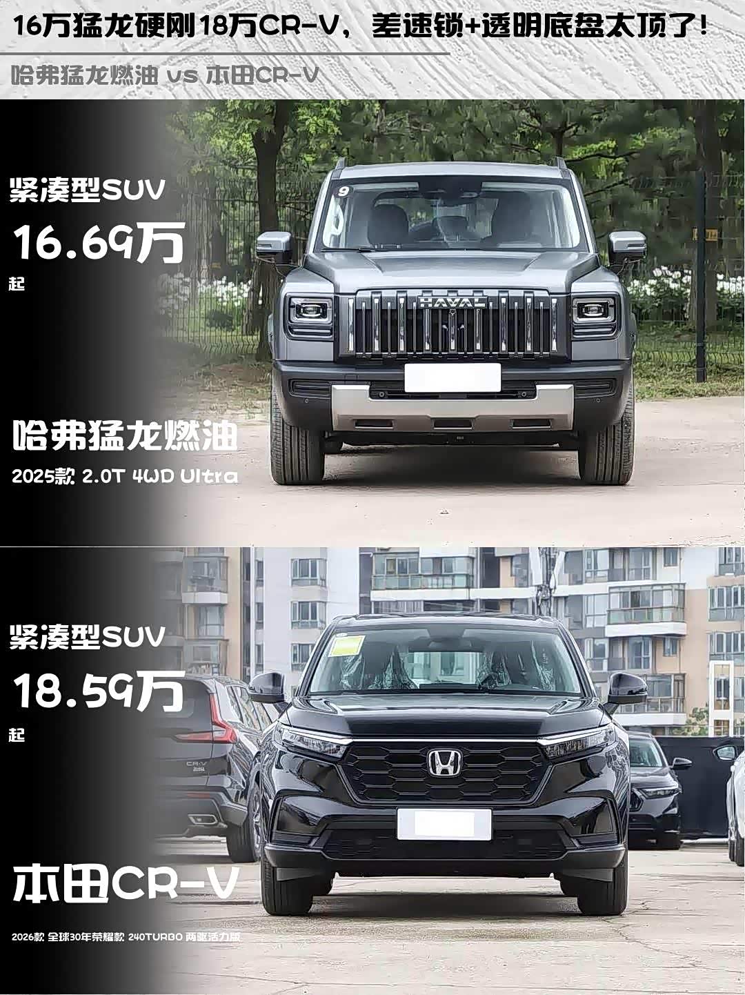 最近后台好多人在问 哈弗猛龙燃油(参数|询价) 2025款 2.0T 4WD Ultra和本田CR-V 2026款 全球30年荣耀款 240TURBO 两驱活力版怎么选?作为深度体验过两台车的"老司机",必须来波硬核对比!🔥