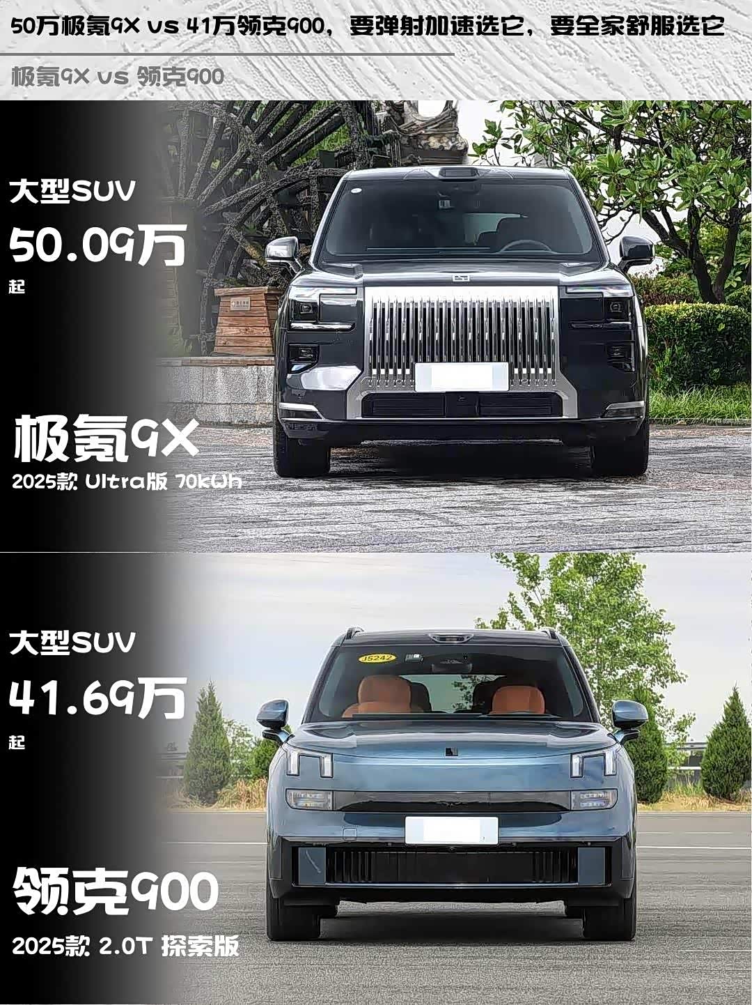 最近在选大型SUV的朋友看过来!极氪9X 2025款 Ultra版 70kWh和 领克900(参数|询价) 2025款 2.0T 探索版这两台车我都深度试驾过,分享一下真实感受,给纠结的兄弟们参考~