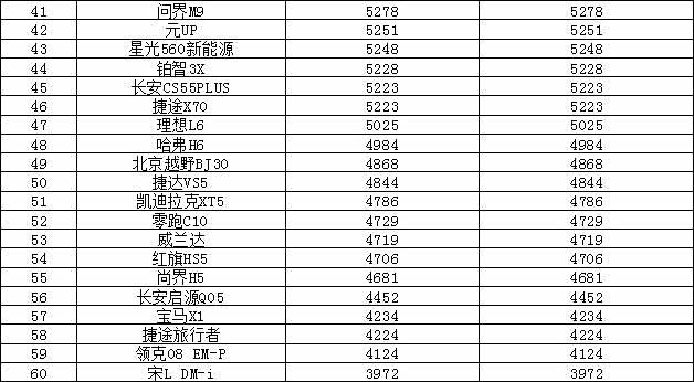 SUV榜前四名被国产品牌囊括,其中小米YU7销量暂时领衔SUV市场。Model Y则在1月跌出前十榜单。