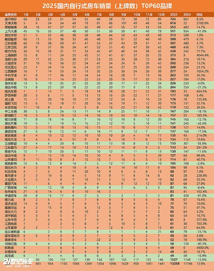 为了更详尽全面的解读2025年自行式旅居车、宿营车销量数据以及洞察数据背后的市场逻辑,让大家久等了。