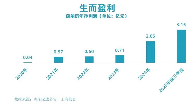 根据山东威达公告的信息,蔚能自成立之际就盈利。到2025年三季度,蔚能当年净利润已经达到3.15亿元。