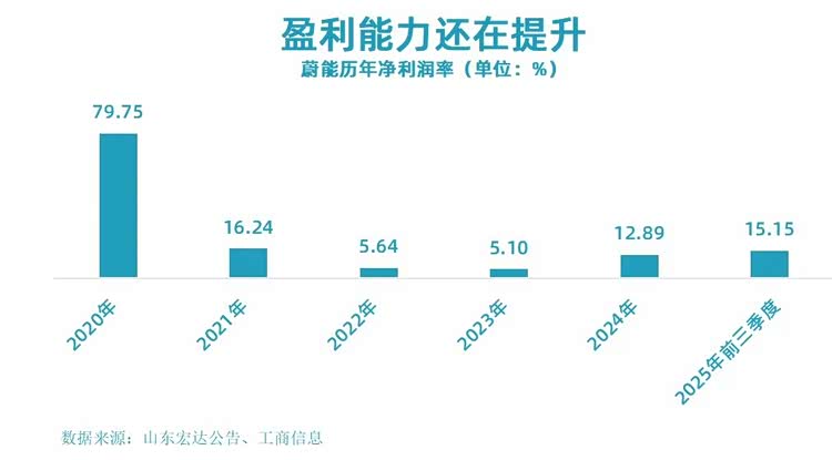 而且,蔚能的盈利水平还在提升。到2025年三季度,其净利润率达到了15.15%。