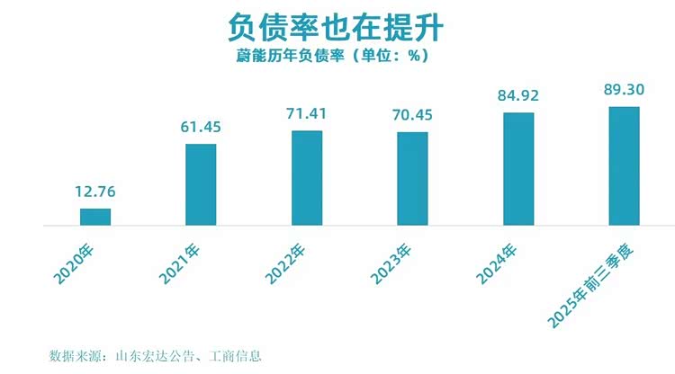 从工商信息也能看出来,蔚能是需要输血的——它在2025年三季度有252亿资产,但是有225亿负债,负债率接近90%。