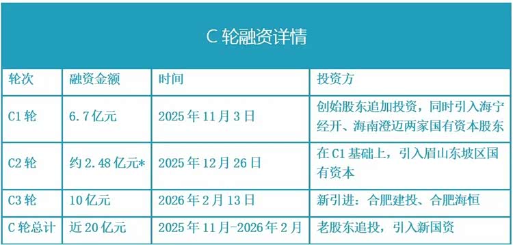 这是蔚能C轮融资的最后一笔。从2025年10月到2026年2月,蔚能C轮累计融资近20亿元,其中C1轮6.7亿元、C2轮2.48亿元、C3轮10亿元。