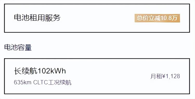 以2026款 ES8(参数|询价)六座行政签名版为例,采用车电分离模式,车价可以降低10.8万,消费者只需月付1128元租金,就可以租用102kWh的电池包。