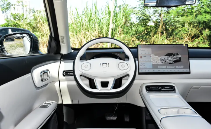 拉开车门,内饰是明显的简约风格,但绝不简陋。最吸睛的当属那块15.6英寸悬浮式中控屏,几乎承包了中控台的全部视觉重心,界面设计清爽,操作流畅度在同价位车型中属于上乘。