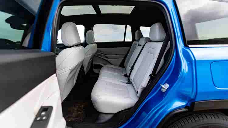 令人印象深刻的是多边形的平底方向盘,兼顾了运动感和科技感,而扶手箱前端区域则保留了旋挡旋钮式换挡机构,堪称Jeep的灵魂,门板装饰同样层次感丰富,可以给予好评,天窗等配置当然也都不会缺席。在动力方面,该车在美国搭载了1.6T四缸混动技术,综合最大功率213马力,0-96公里加速8.5秒,对一款中型燃油SUV有着基本正常的水平,突出燃油经济性和平顺性的表现,非常值得期待。