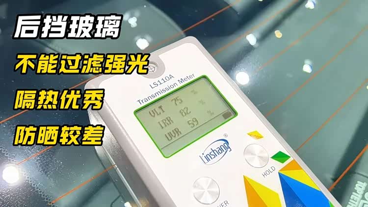 本田雅阁 2025后挡玻璃用料也不算太好。75%的透光率(VLT)表明这块玻璃无法在夜间很好阻隔后车强光;红外阻隔率(IRR)为82%,在市场上算是主流优秀水准,但紫外阻隔率(UVR)仅为59%,防晒能力较差。