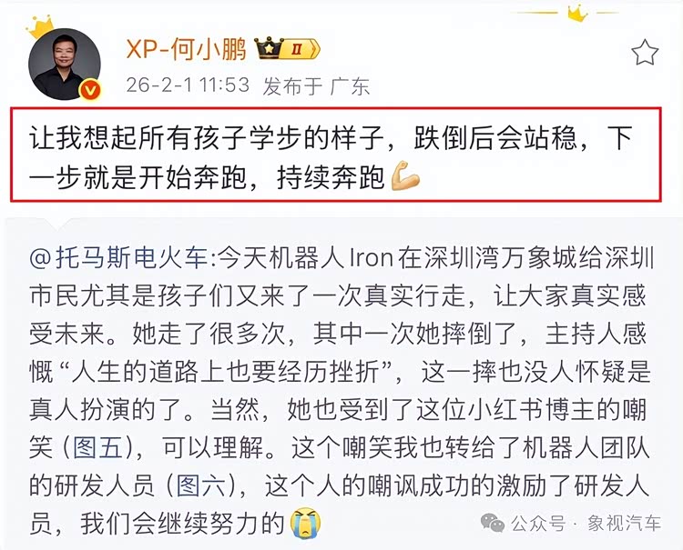 这不,2月24日,马年春节首个工作日,根据《21汽车·一见Auto》爆料,何小鹏向全体员工发布了一封开工信,主题为“稳进破局,2026共赴物理AI新十年”。