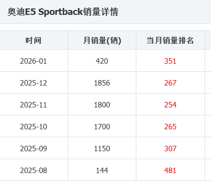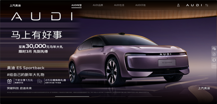 这与主要竞品(如特斯拉Model 3)月销稳定在万台以上的水平相比,显得十分惨淡。截至2026年初,其年销量也仅有6650辆,不及其他新势力品牌的零头。面对这种压力,奥迪近期已经宣布对E5 Sportback进行限时降价3万元,起售价下调至20.59万元,试图以价格换市场。