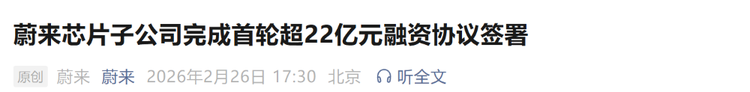 ▲蔚来芯片子公司获超22亿融资