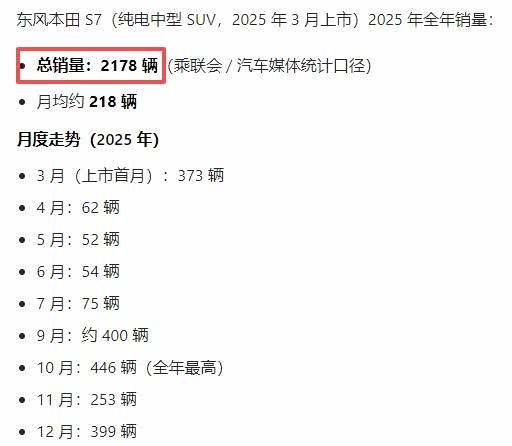 为什么?因为时代变了。曾经的合资品牌,是在用“基础交通工具”的逻辑做车,一套成熟的动力总成就能吃几十年红利;但现在的中国车企,是用“智能移动终端”的逻辑在降维打击。当自主品牌把高阶智驾、智能座舱当成标配塞进十几万的车里时,东风本田在干嘛?看看他们被寄予厚望的新能源车东风本田 S7,上市三个月累计销量不足500台,12月更是跌至52台。更让人大跌眼镜的是,都2025年了,它的高速领航和智能泊车功能,居然还要让用户额外掏1.4万元选装!