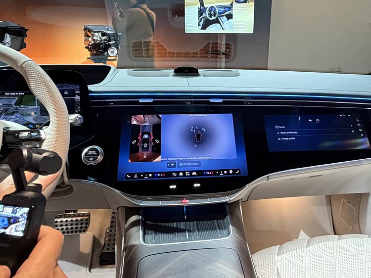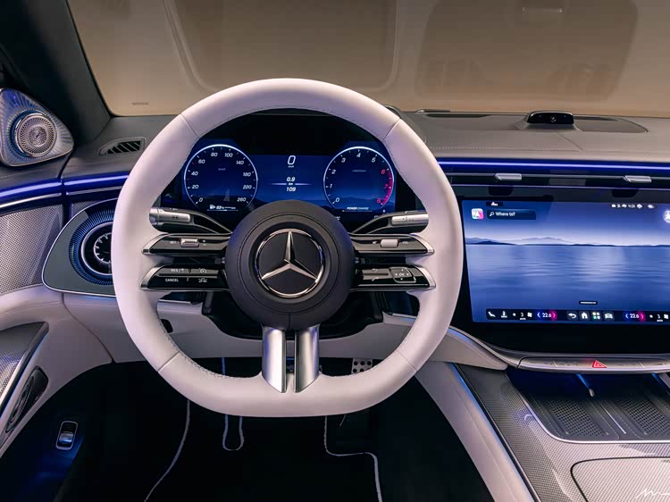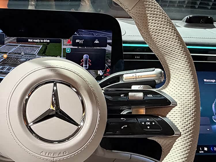 在驾驶辅助硬件层面,新款奔驰S级搭载10个外部摄像头、5个雷达传感器以及12个超声波传感器,形成多传感器融合架构。软件方面标配MB.DRIVE辅助驾驶系统,支持带车道居中功能与变道辅助功能的自适应巡航。升级至MB.DRIVE辅助驾驶PLUS后,可解锁智能泊车辅助系统,支持斜向停车,在时速5公里以内进行泊车控制,同时具备循迹倒车功能。未来还将通过OTA方式升级轮圈保护预警功能。针对中国市场,还将提供城区及高速领航辅助驾驶系统,以应对复杂交通环境。