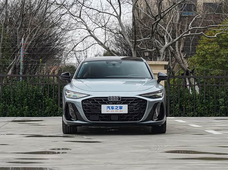 我们首先来看新车的外观设计方面,全新奥迪A6L采用致雅型与动感型双前脸设计,精准覆盖不同消费需求。致雅型延续经典镀铬格栅,横向饰条规整排布,营造出低调内敛的豪华质感,适配商务场景的庄重需求;动感型则配备全套熏黑运动套件,蜂窝状进气格栅配合熏黑前唇,尽显运动张力,满足年轻消费者的个性诉求。前脸整体线条简洁大气,摒弃冗余装饰,凸显奥迪家族的简约设计美学。两侧矩阵式LED大灯是车头的点睛之笔,造型锐利修长,支持多模式动态灯光切换,可投射导航箭头、行人警示符号及动态迎宾光影,夜间点亮仪式感拉满。
