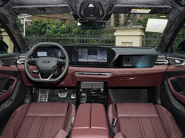 进入车内,内饰延续奥迪经典三屏交互系统,12.3英寸全液晶仪表、10.1英寸中控屏与8.6英寸空调触控屏组成曲面双联屏,搭载高通骁龙8150芯片,操作流畅度显著提升。座椅采用前排支持电动调节、加热、通风及按摩功能,长途驾驶舒适性大幅优化。空间表现方面,3024mm的轴距带来充裕的前后排空间,身高183cm的乘员在前排调整至常规驾驶坐姿后,头部空间约一拳,后排腿部空间可达两拳以上,中央地台隆起控制在合理范围,提升中间乘客的舒适性。