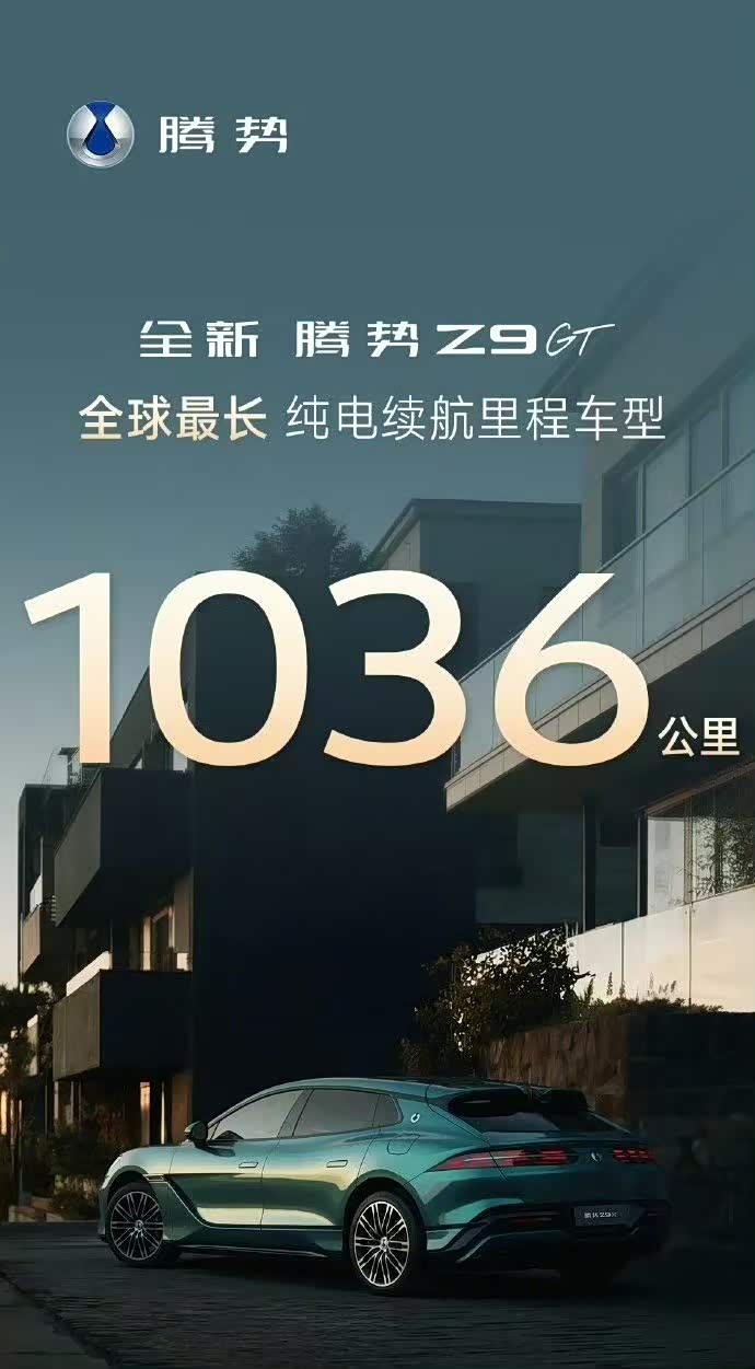 比亚迪腾势官宣全新腾势 Z9GT 纯电续航 1036 公里,为全球最长纯电续航车型。新车延续家族外观,车顶配激光雷达与小蓝灯,新增 21 英寸低滚阻轮圈及两款新配色。车身尺寸 5195 (5180)/1990/1480 (1500) mm,轴距 3125mm。动力提供单 / 三电机,纯电版配两种电池,CLTC 续航 820-1036km;插混版搭载 63.82kWh 电池,WLTC 纯电续航 301km,续航较现款大幅提升。
