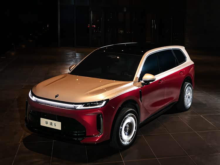 五菱与华为合作推出了华境汽车,首款车型 华境S(参数|询价)基于天域架构L平台打造,定位大六座SUV,长宽高5235/1999/1800mm,轴距3105mm。本次发布的“炽焰鎏金色”官图,最大的特点就是采用了迈巴赫同款的双拼车色,采用巴斯夫定制车漆,侧面的线条设计也增添了一份肌肉感。还有迈巴赫同款“大饼轮圈”,进一步提升豪华感。