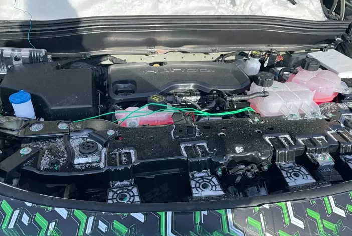 言归正传,这款新车的卖点,还是它的动力系统和智能化技术。目前所传出的信息指出,新车将提供一台发动机,测试图中也直观展示了,但并不确定新车是采用插混方案,还是增程方案,这就要等官方发布。