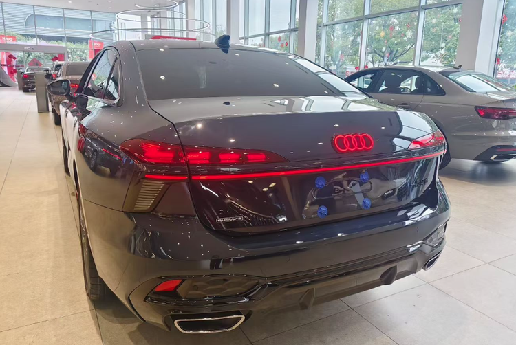 车型侧面,我们能够明显发现整车的线条感非常饱满,而且有着半隐藏样式的门把手设计,花瓣造型的轮毂,整个设计非常年轻化。尾部有着可点亮的尾标,以及点阵样式加贯穿尾灯造型的设计,确实亮眼。此外,尾部的标识也早就告诉我们动力系统了,全新一代奥迪A6L将依然搭载2.0T发动机,依然区分为高低功版本,还拥有quattro四驱系统,尾部双边共双出的扁形排气管显得年轻感十足。