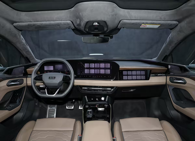 新车内饰则是现在奥迪最新的家族化设计风格,11.9英寸仪表屏+14.5英寸中控屏+10.9英寸副驾屏的三屏组合,此外还有W-HUD抬头显示系统。