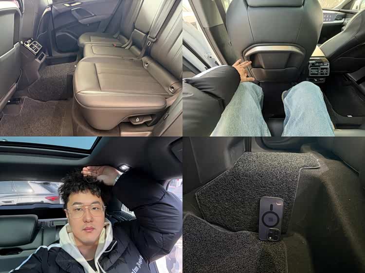 像我身高1米83,我把前排调到舒服的位置以后,我的后排腿部空间仍然是巨大无比,头部空间也非常充裕。