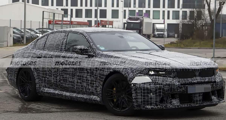 回顾此前曝光的外观谍照,新款M5的前脸设计也与现款车型形成了区别。虽然它遵循了新世代设计语言的大方向,但并未采用类似全新iX3上那种尺寸显著收窄的格栅设计。车身侧面依然保持着M车型特有的宽体姿态,前后保险杠的造型预计也会有一些细节上的调整,以进一步优化空气动力学表现或视觉攻击性。