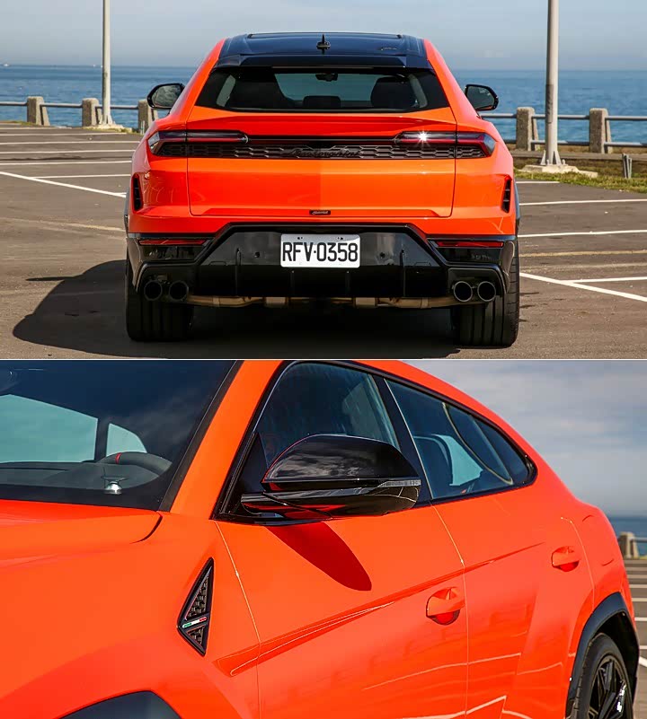 来到车尾,熟悉的背影下,Urus SE 则是配置设计灵感来自前前代「小牛」:Gallardo 的连贯式设计尾灯组,以及重新设计的后保险杠和底盘分流器,并修改了行李厢的开口,让 Urus SE 可在高速时拥有较 Urus S 增加 35%的车尾下压力 。