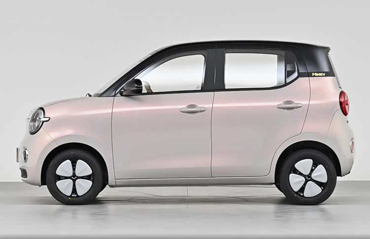 此次亮相的实车采用了双色车漆涂装,其中车顶和后视镜以及A柱、C柱都是黑色涂装,C柱上还带有MINIEV的字样。车身整体线条很简洁干练,隆起的腰线很硬朗。尺寸方面,新款车型的长宽高分别为3268/1520/1575mm,长度和宽度进一步增加,2190mm的轴距和第四代车型保持一致。