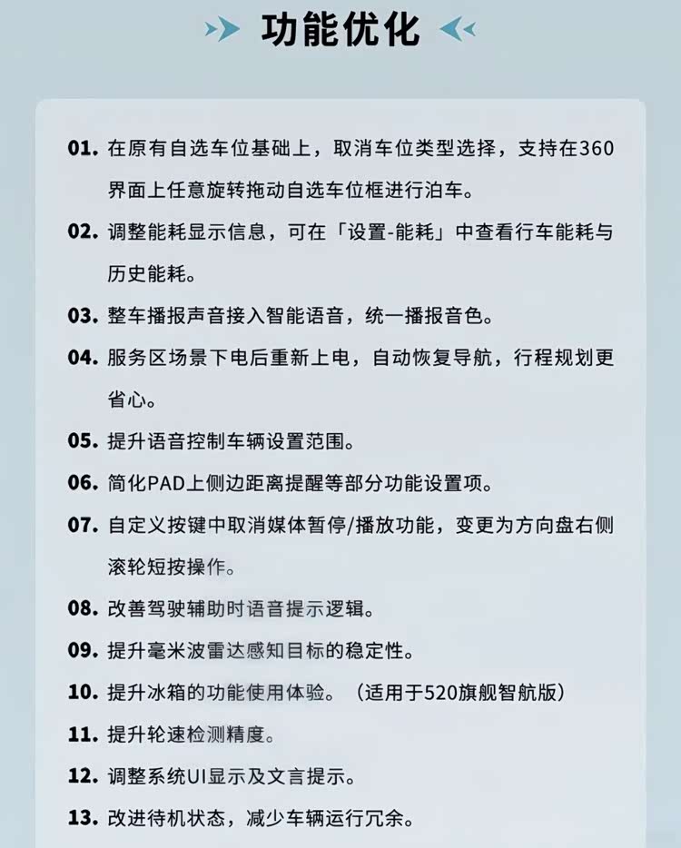 所以这次比亚迪的OTA更像是“安全治理”而不是“功能上新”。把泊车流程做得更可控,把感知稳定性做得更可靠,把提示逻辑做得更不误导,把语音和系统入口做得更防呆——这不是保守,这是把事故概率按下去的真功夫。