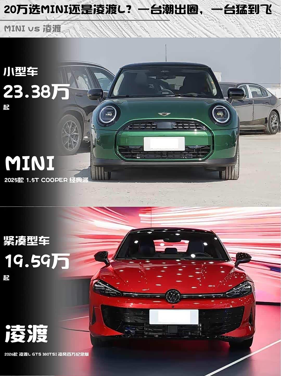 最近纠结MINI 2025款 1.5T COOPER 经典派和 凌渡(参数|询价)L GTS 380TSI 凌风百万纪念版的朋友看过来!作为深度体验过两台车的玩家,掏心窝子分享真实对比感受👇