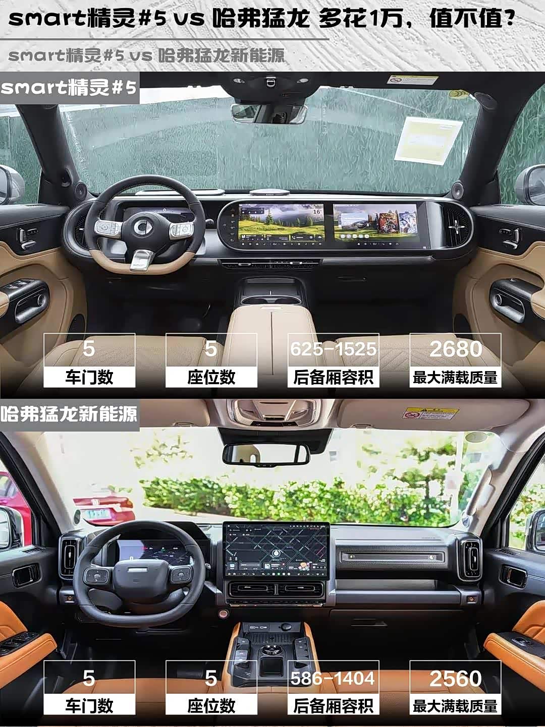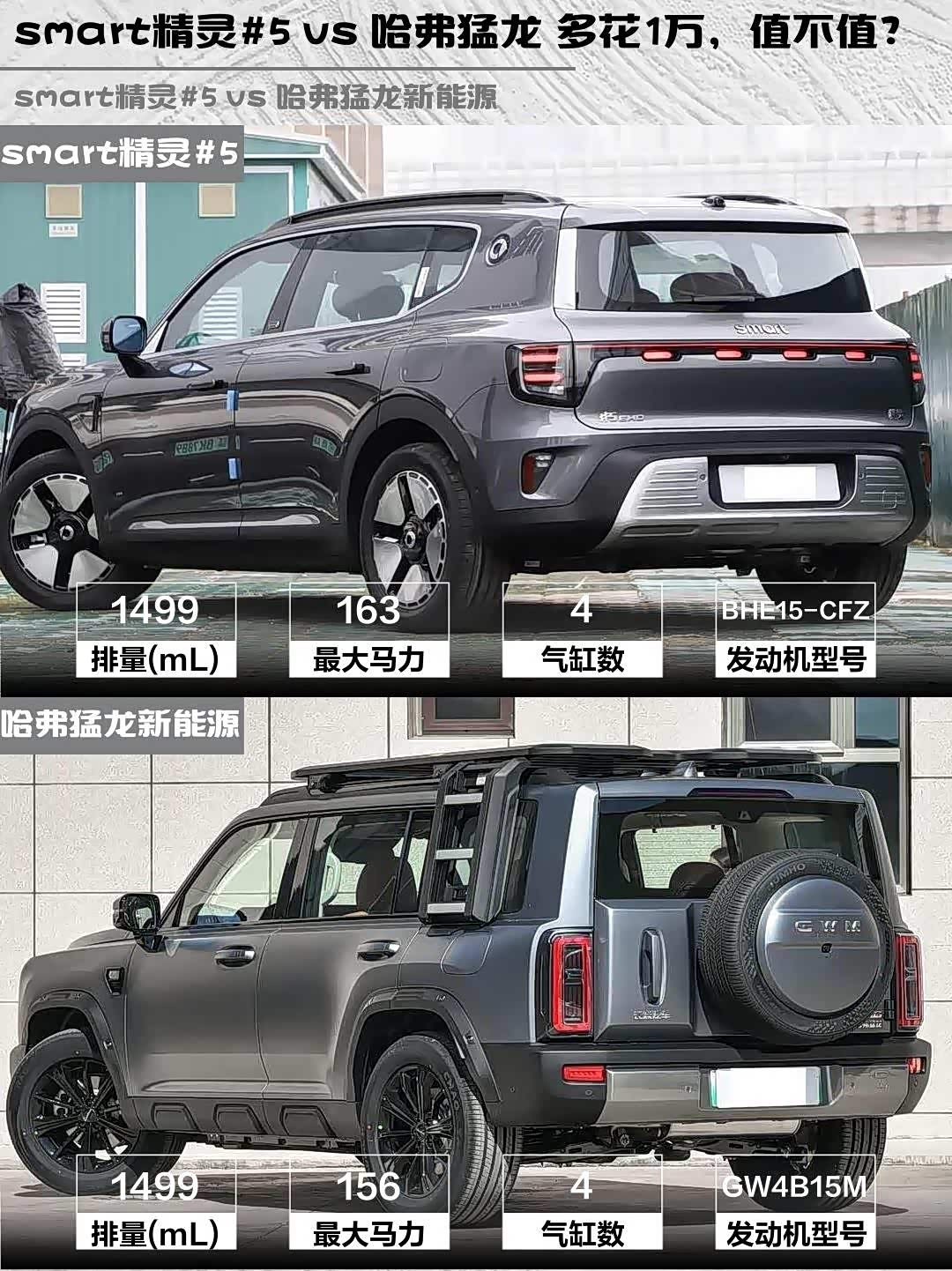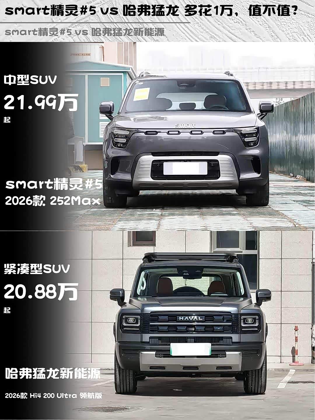 最近在纠结选车的小伙伴看过来!今天给大家深度对比两款热门新能源SUV—— smart精灵#5(参数|询价) 2026款 252Max和哈弗猛龙新能源 2026款 Hi4 200 Ultra 领航版,都是20万级插混选手,但性格完全不同哦!🔥