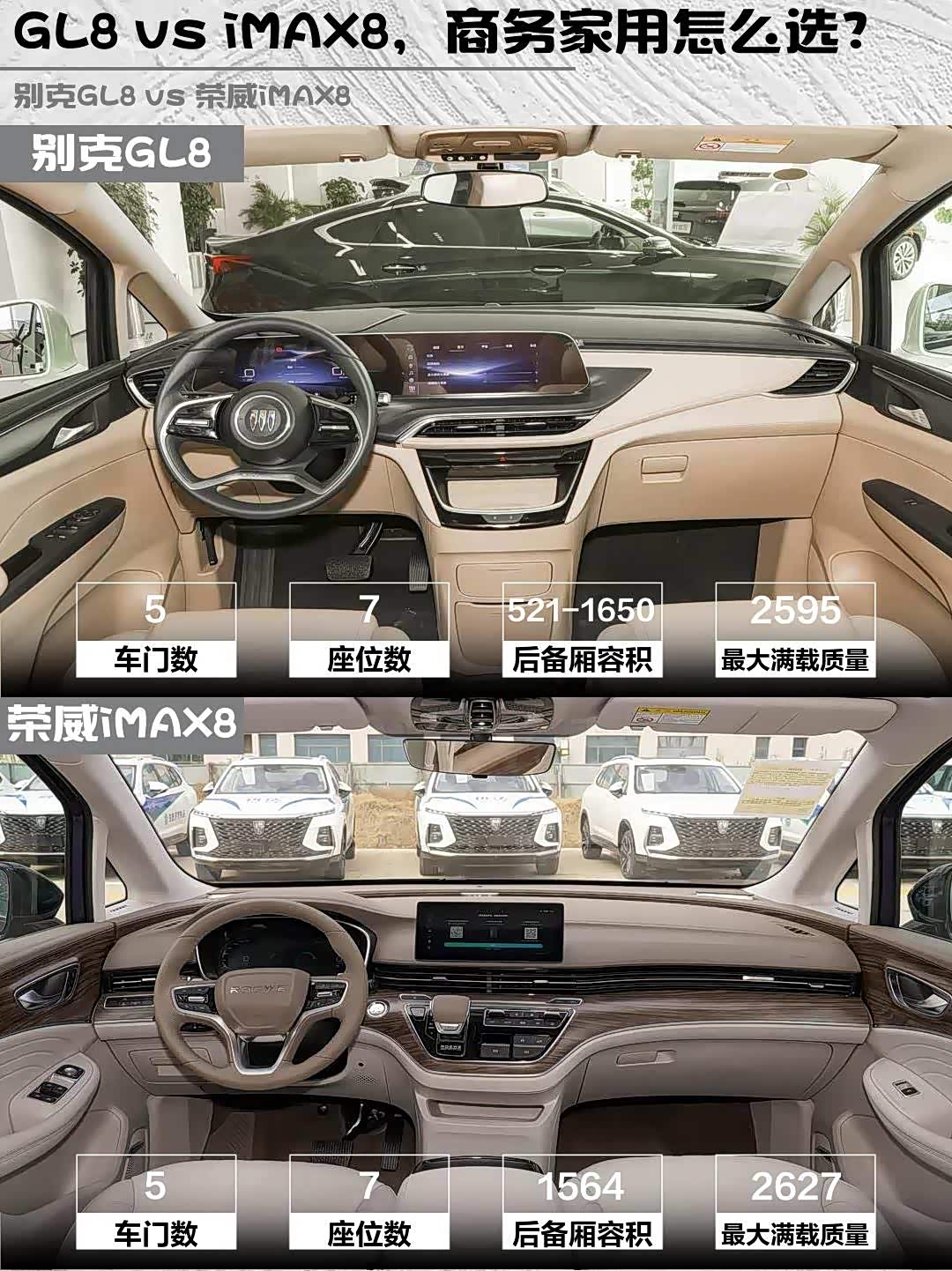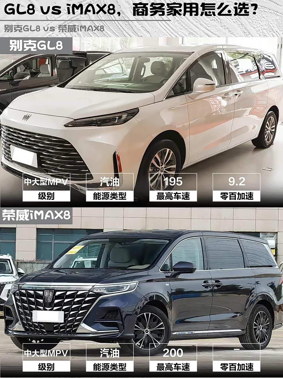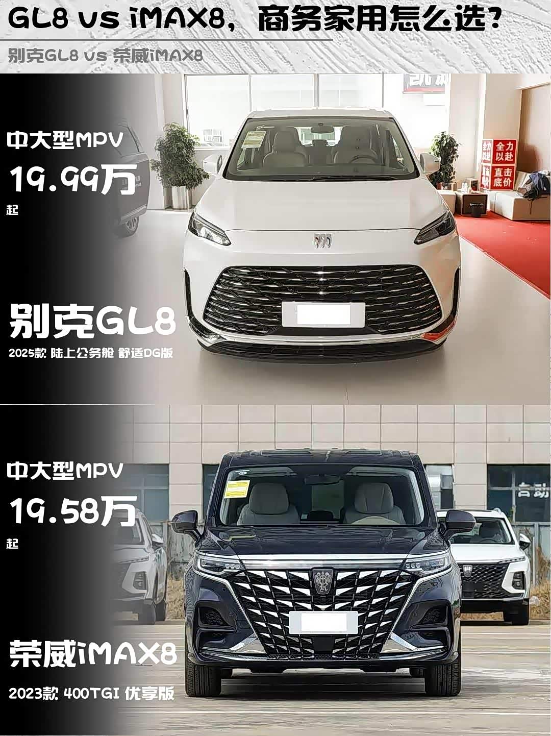车家号·0浏览·2026-02-28 08:35 · 北京最近在选家用MPV的朋友看过来!今天深度对比两款热门车型——别克GL8 2025款 陆上公务舱 舒适DG版和 荣威iMAX8(参数|询价) 2023款 400TGI 优享版,都是20万级中大型MPV,但性格差异明显👀