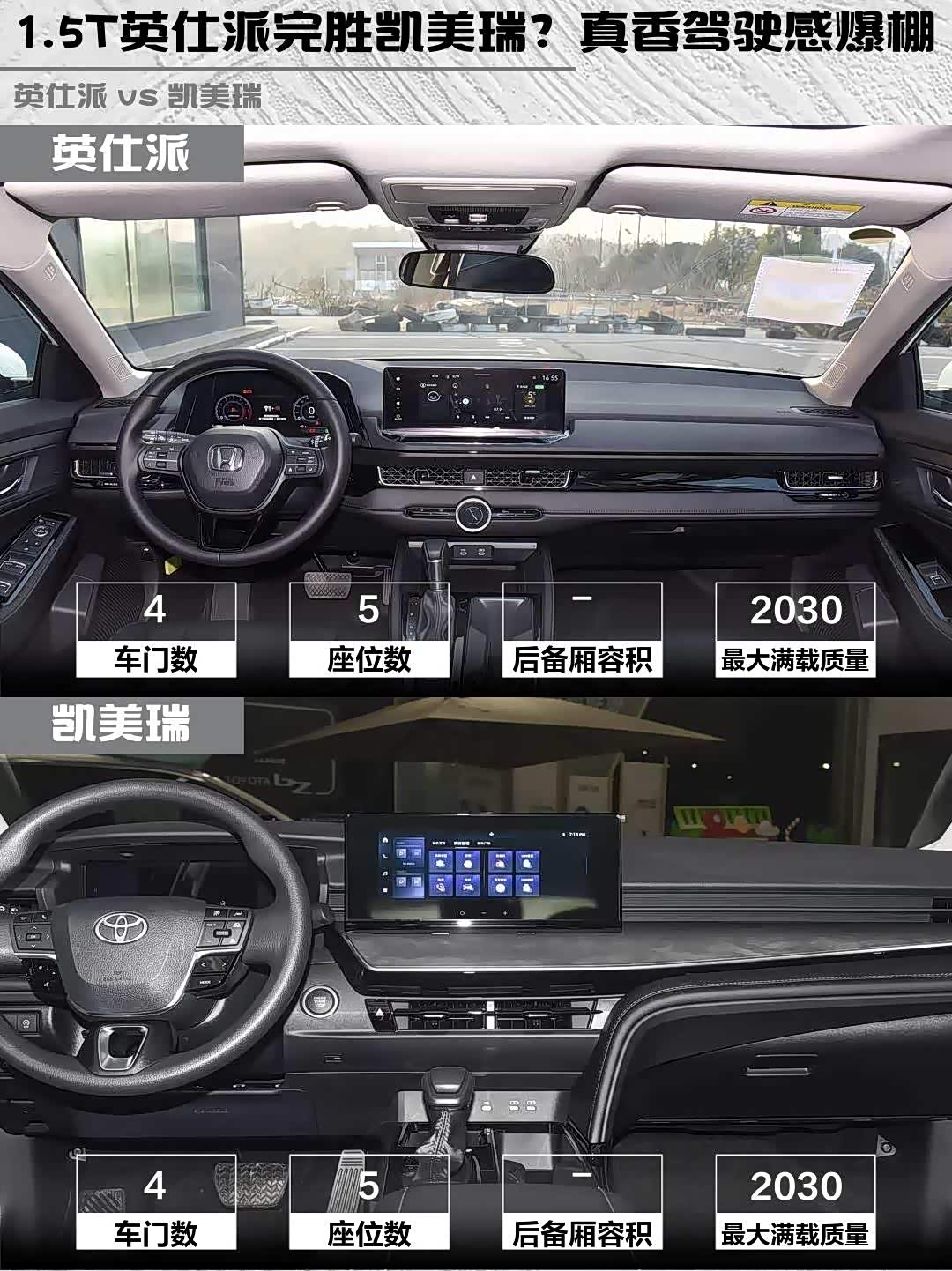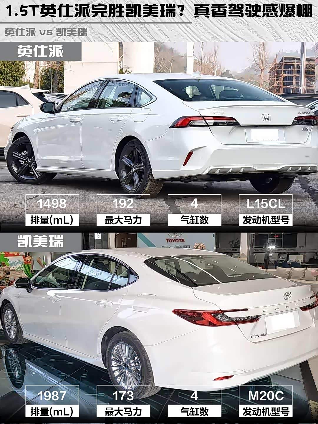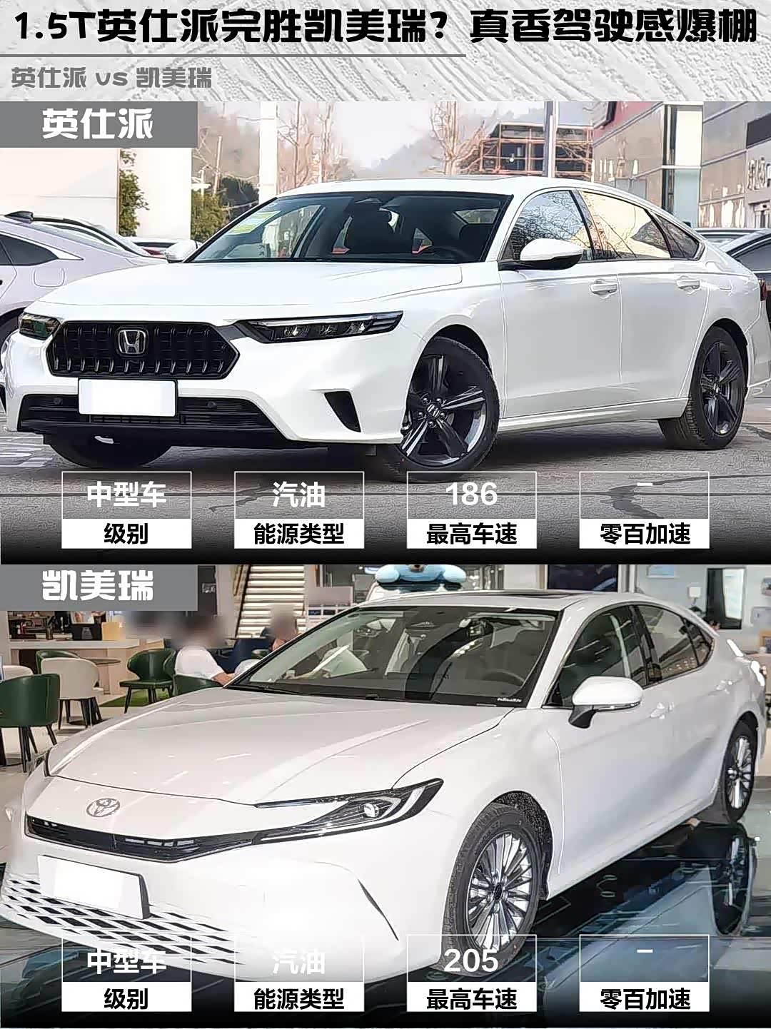 要驾驶乐趣选英仕派,1.5T动力随叫随到,配置也更厚道;图省心省钱选凯美瑞,油耗表现惊艳,二手市场更吃香。个人更推荐英仕派,毕竟全系标配10气囊+Honda SENSING,安全配置没缩水,深海幽蓝车漆在阳光下绝绝子!你们会pick哪款?