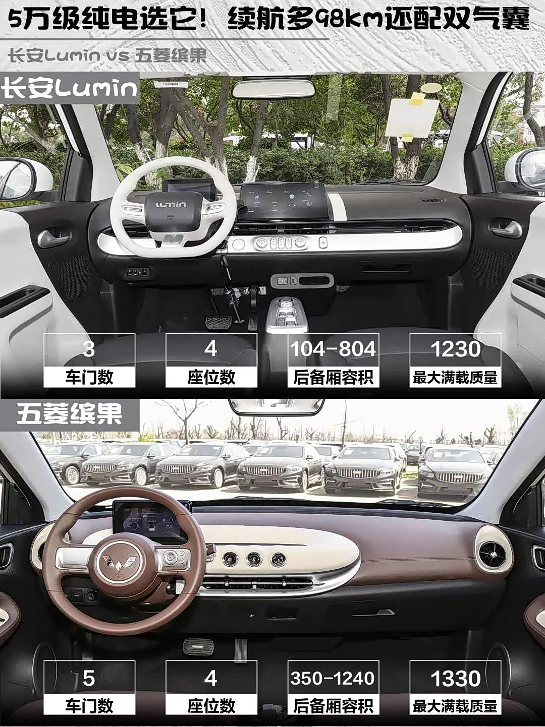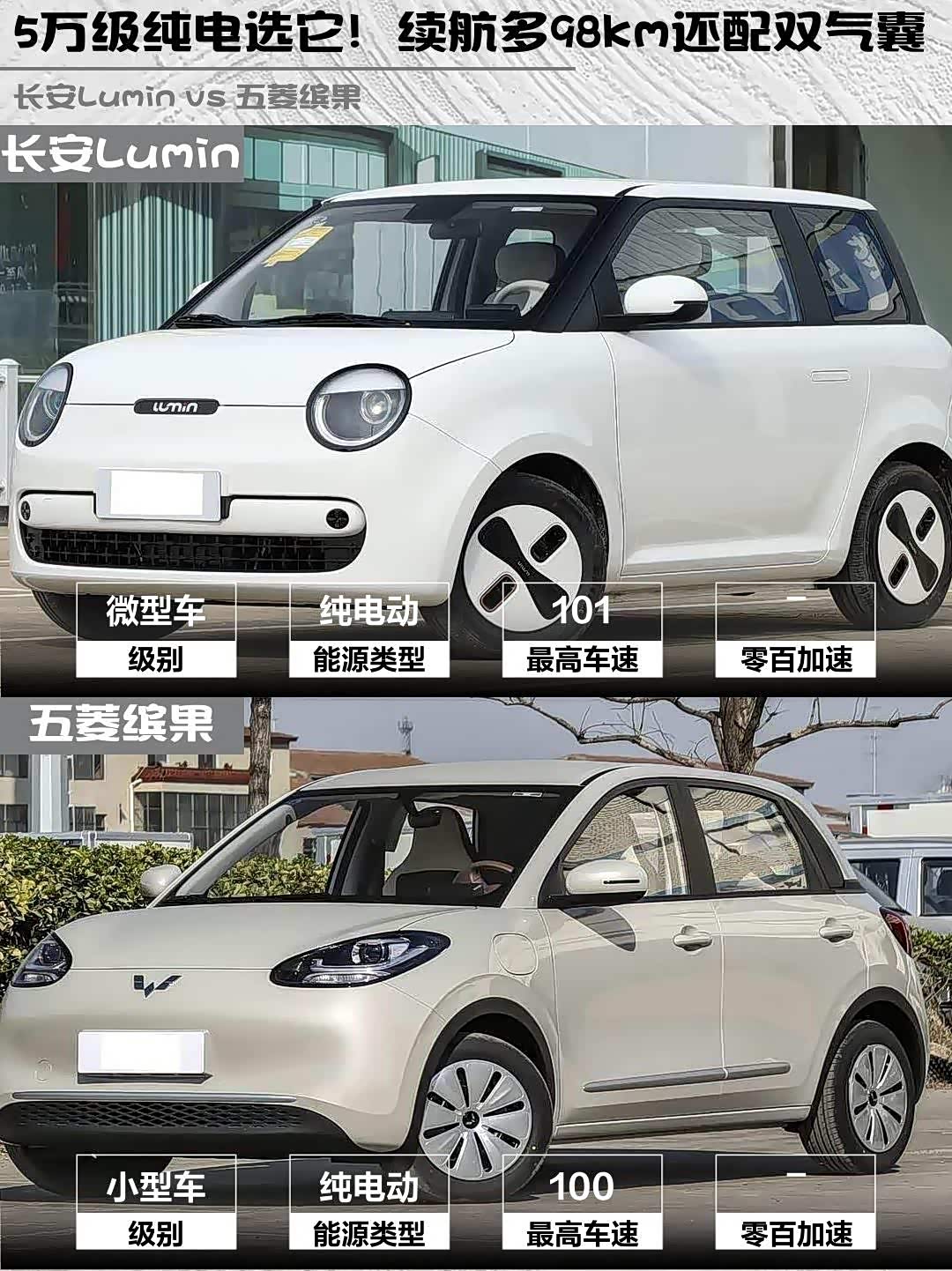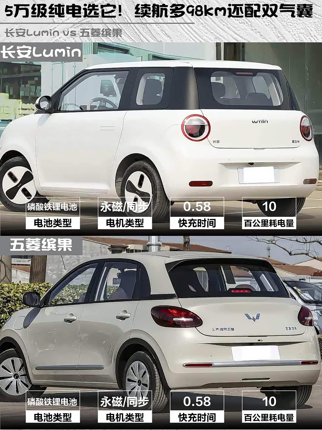 最近在纠结5万级纯电小车选谁? 长安Lumin(参数|询价) 2026款 宝藏版 301km和五菱缤果 2025款 203km轻享款深度对比来啦!作为两款国民神车,到底谁更香?看完这篇你就懂了👇