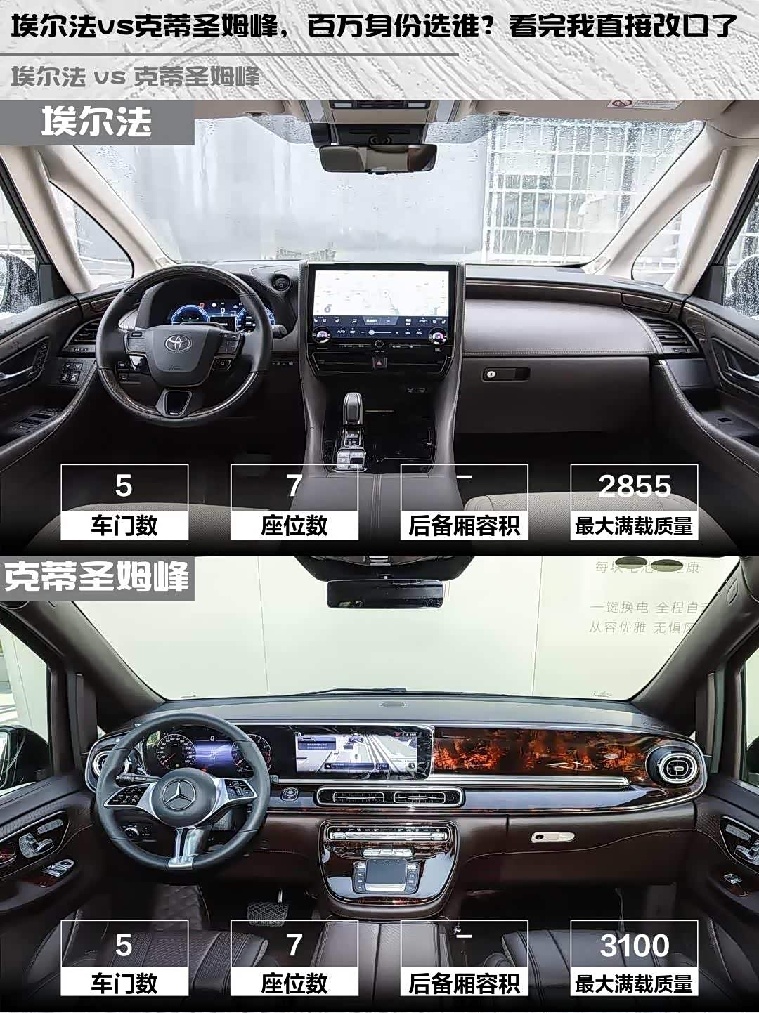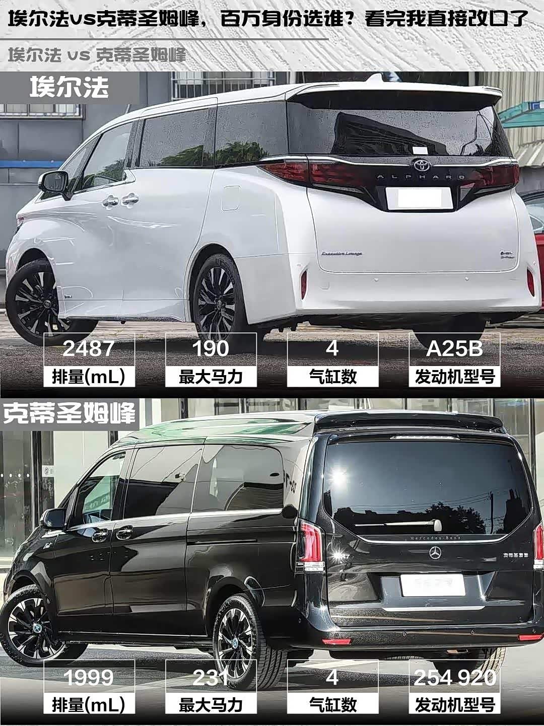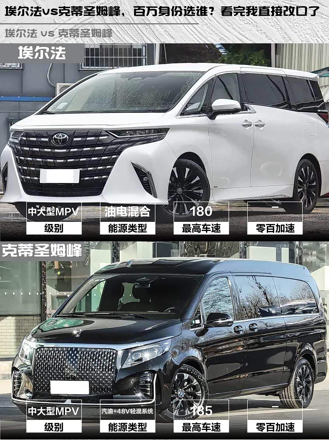 埃尔法vs克蒂圣姆峰,百万身份选谁?看完我直接改口了