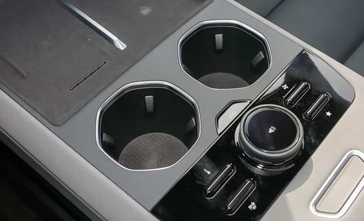 实体控制区中央大旋钮带小显示屏,周围四个按键可切换至控制菜单,包括空调温度、风量、驾驶模式和自定义,控制时主屏幕有对应画面,比较方便。