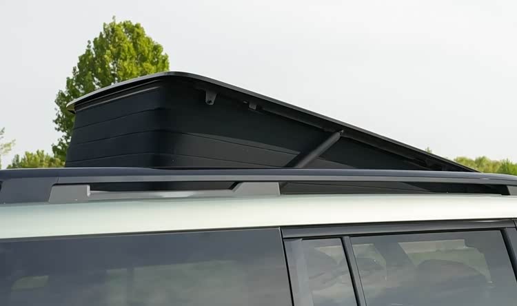 有个很独特的功能,就是车顶采用36cm电动举升天窗,30秒即可电动升降,达到一些房车升顶的效果。其价值就是在车内睡觉的时候,可以舒适地坐在床上。另外,围布可以更换为窗纱,这样就不用担心车内空气流通问题,还能防蚊虫,无需开空调费电通风了。