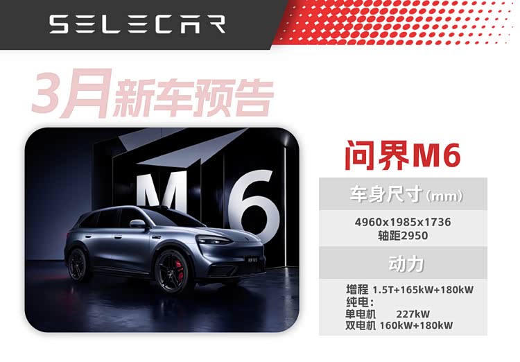 问界M6是这最近备受关注的一台问界车型,在3月4号的鸿蒙智行技术焕新发布会上, 问界M6(参数|询价)预计将会首发并且开启小订。