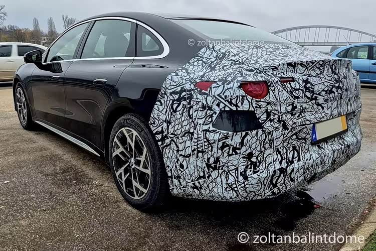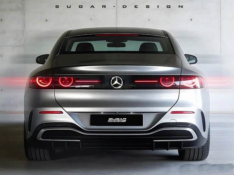 至于车尾,观感属于是溜背式的设计,还配有一个立体的小鸭尾,整体偏向运动风格。尾灯近似于全新CLA的设计,同样带有星徽车标,大概率最终版本就会是这种贯穿式样式,带银色镀铬装饰和下扩散器的后包围也进一步强化了运动属性。