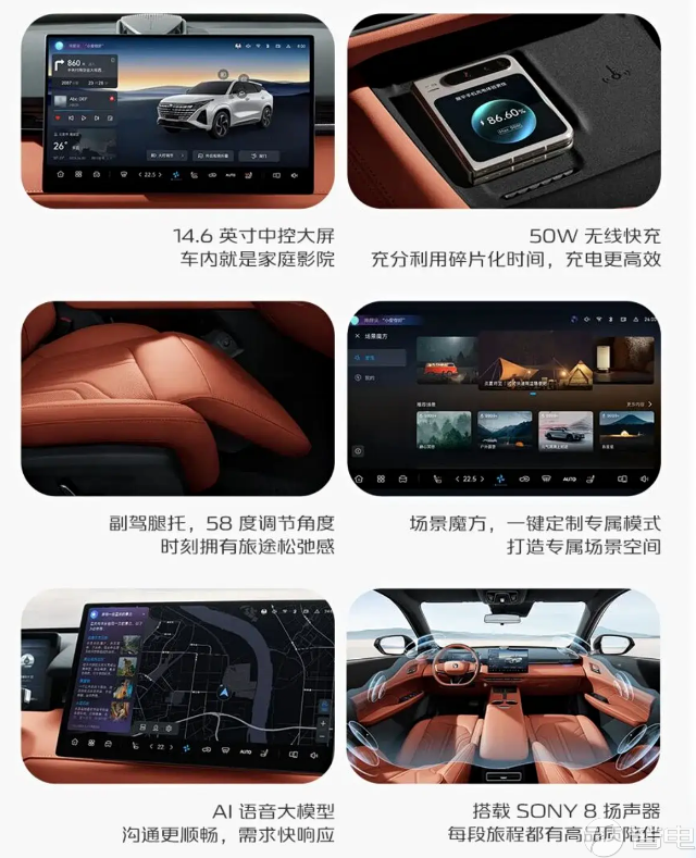 内饰方面,新车采用新造型方向盘、新换挡机构。全系标配14.6英寸中控屏,集成天枢智能OS、AI语音大模型。FaceID 3.0人脸识别系统。此外,还提供50W无线快充、云感零压座椅。智能配置方面,新车搭载5颗毫米波雷达,全系标配APA泊车辅助以及标配前碰撞预警等。