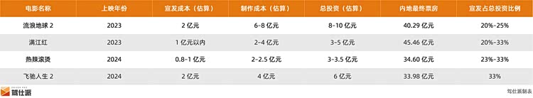 本文内电影的成本及宣发费用都为估算值,根据网络信息和综合数据参考及推测,不代表每部电影的真实成本和宣发费用情况。表格整理应用Kimi、豆包等AI大模型工具辅助,数据信息仅供阅读参考,不作为标准研究引用。